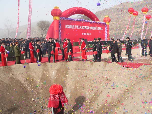 禮炮聲中,省委副書(shū)記、代省長(zhǎng)徐守盛宣布工程奠基。省委副書(shū)記韓忠信講話(huà)。蘭州軍區(qū)副司令員王乃勤參加了奠基儀式。奠基儀式由副省長(zhǎng)楊志明主持。