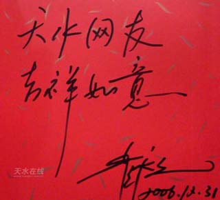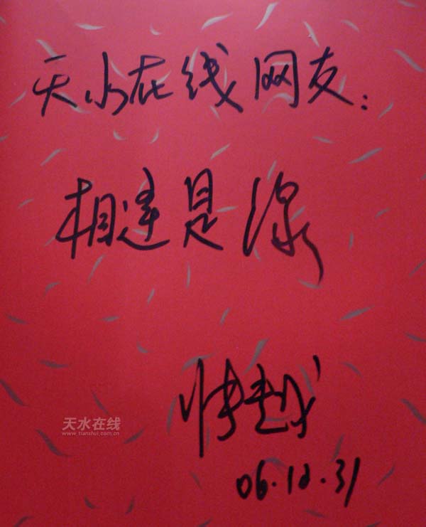 張越題詞:天水在線網(wǎng)友 相逢是緣