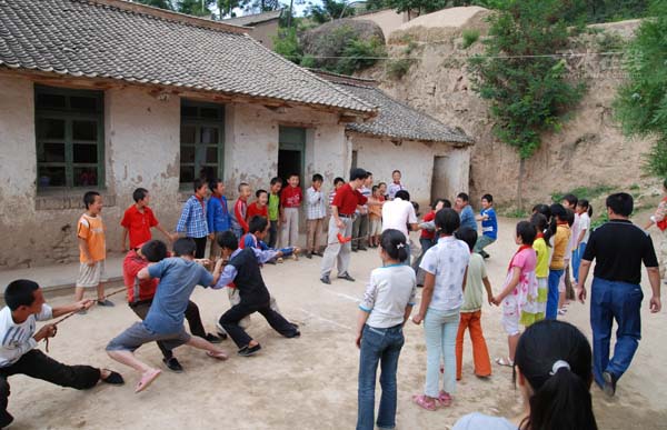 甘谷縣程家窯小學(xué)的學(xué)生在參加拔河比賽