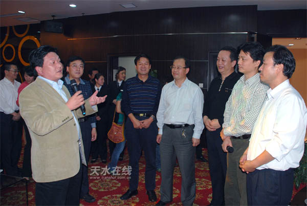 天水在線訊 9月18日晚,中共天水市委書記虞海燕在國稅賓館接見崔永元一行。