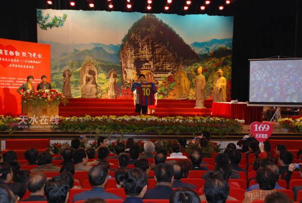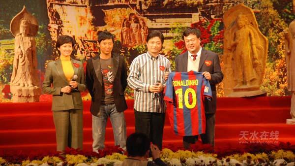 記者隨后了解到,此次慈善拍賣會是由中國紅十字基金會、甘肅省工商業(yè)聯(lián)合會、甘肅省慈善總會主辦,崔永元公益基金、甘肅省教育廳、甘肅省紅十字會、中國知音網(wǎng)、天水市人民政府承辦。共有演藝界、書畫界、社會名人、體育明星、著名主持人的珍品及藏品30余件(幅)現(xiàn)場競拍。其中有甘肅省委書記、省人大常委會主任陸浩捐獻(xiàn)的英國頂級球隊阿森納隊隊服和美國俄克拉荷馬州州長的贈畫,省長助理郝遠(yuǎn)提供的北京奧組委領(lǐng)導(dǎo)簽字的奧運盛鼎紀(jì)念郵冊;演藝界閻維文