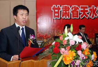 下面進行第一項:請?zhí)焖形睍、天水市人民政府代市長李文卿同志致辭并介紹天水的投資環(huán)境;