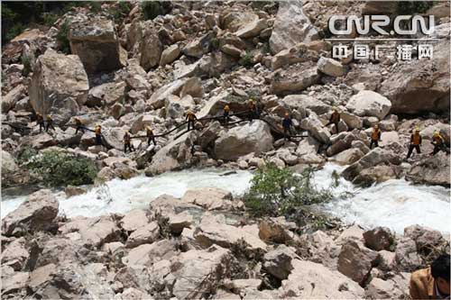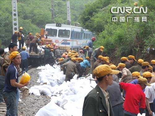 鐵路109號(hào)隧道塌方搶險(xiǎn)取得新進(jìn)展。繼14日隧道搶險(xiǎn)第一階段措施----封堵隧道兩端、切斷空氣流通,成功撲滅明火后,中鐵電氣化局抗震搶險(xiǎn)隊(duì)伍分秒必爭(zhēng),開始用幾十臺(tái)高壓泵從嘉陵江抽水向隧道內(nèi)注水降溫,為下一階段清理泥石,救援掩埋列車,修復(fù)損毀隧道和線路爭(zhēng)得了時(shí)間。在現(xiàn)場(chǎng)指揮搶險(xiǎn)的鐵道部副部長盧春房對(duì)這支勇赴危難、頑強(qiáng)拼搏的搶險(xiǎn)隊(duì)伍給予高度贊揚(yáng)。目前,搶險(xiǎn)施工正在有序快速推進(jìn)。