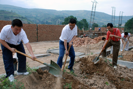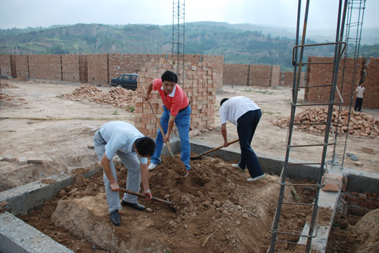 市委組織部機(jī)關(guān)黨員干部一大早來(lái)到田川村新村建設(shè)工地,在初步了解新村建設(shè)規(guī)模、進(jìn)度等情況后,領(lǐng)導(dǎo)帶領(lǐng)機(jī)關(guān)黨員干部立即加入到熱火朝天的勞動(dòng)隊(duì)伍中,揮動(dòng)鐵鍬幫助村民挖土填坑,平整新建房屋基地。盡管烈日炎炎,大家滿身灰塵,汗流浹背,卻沒(méi)有一人喊累,沒(méi)有一人退縮,始終堅(jiān)持與村民勞動(dòng)在一起,用自己的實(shí)際行動(dòng)在深入農(nóng)村、服務(wù)農(nóng)民、幫助災(zāi)區(qū)群眾重建家園的實(shí)踐活動(dòng)中展示共產(chǎn)黨員的先進(jìn)性,樹(shù)立黨員干部的新形象。勞動(dòng)之余,機(jī)關(guān)黨員干部還來(lái)到田川村,看望受災(zāi)群眾,走入村支部了解基層黨支部建設(shè)情況,并實(shí)地察看了該鄉(xiāng)青蓮附中重建工作進(jìn)展情況。勞動(dòng)雖緊張而辛苦,卻充實(shí)而滿足。大家都認(rèn)為這個(gè)特別的“黨員活動(dòng)日”過(guò)得非常有意義,為自己能夠親身參與到農(nóng)村災(zāi)后重建工作中,給受災(zāi)群眾做實(shí)事而感到高興。