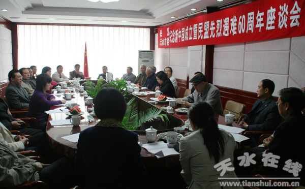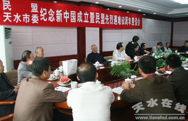5月10日,民盟天水市委紀念新中國成立暨民盟先烈遇難60周年座談會在天水迎賓館召開。市委常委、統(tǒng)戰(zhàn)部長李美華,市政協(xié)副主席、市民盟主委安志宏及市民盟有關(guān)負責(zé)人,市民盟盟員、民盟遇難烈士親屬、遇難烈士見證人等出席會議。