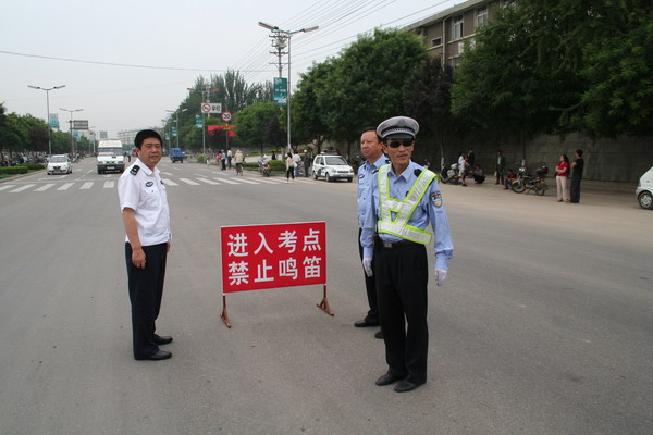 6月7日是2009年全國統(tǒng)一高考的第一天,天水市高考交通安全管理與服務(wù)工作領(lǐng)導(dǎo)小組組長、市公安局副局長、交警支隊(duì)支隊(duì)長霍秦生帶領(lǐng)有關(guān)負(fù)責(zé)人,對秦州區(qū)設(shè)立的天水一中、天水三中、解一小學(xué)、羅玉中學(xué)、逸夫中學(xué)等六處高考考點(diǎn)的交通安全保障工作進(jìn)行了現(xiàn)場指導(dǎo)和檢查,以確保今年高考順利進(jìn)行。