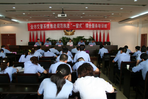 為實(shí)施車輛管理所“一窗式”綜合服務(wù),合并機(jī)動(dòng)車和駕駛?cè)说怯洿翱?6月24日,市交警支隊(duì)舉辦為期7天的“一窗式”綜合服務(wù)業(yè)務(wù)培訓(xùn)班。車管所全體民警、兩區(qū)五縣8個(gè)交警大隊(duì)車管分所民警及機(jī)動(dòng)車查驗(yàn)員、考試員共計(jì)130余人參加培訓(xùn)!