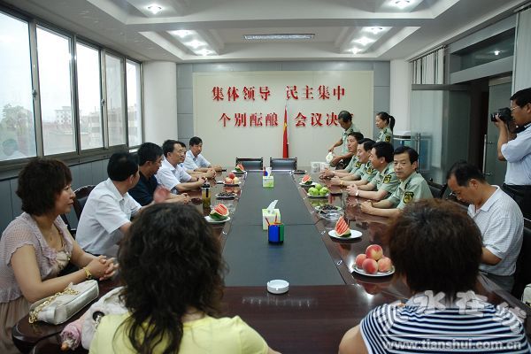 7月21日上午,值此“八一”建軍節(jié)即將來(lái)臨之際,天水市旅游局、市文聯(lián)和天水機(jī)場(chǎng)有限公司負(fù)責(zé)同志帶著慰問(wèn)品聯(lián)合慰問(wèn)了市消防支隊(duì)官兵,并進(jìn)行座談。市文聯(lián)還組織我市書(shū)法家現(xiàn)場(chǎng)為官兵揮毫獻(xiàn)藝,充分展現(xiàn)了軍民一家親的魚(yú)水之情。市旅游局、市文聯(lián)、天水機(jī)場(chǎng)主要領(lǐng)導(dǎo)、分管領(lǐng)導(dǎo),東關(guān)街道辦事處負(fù)責(zé)人,天水在線記者等共計(jì)20余人參加了慰問(wèn)活動(dòng)。