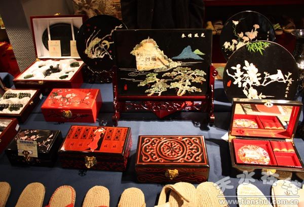 近年來,天水市旅游商品有了快速的發(fā)展,形成了30多個系列5000多個品種,主要有:以雕漆、地毯、絲毯、鴛鴦玉器、龐公石等地方傳統(tǒng)工藝為主的特色工藝旅游商品;以仿青銅器、古陶藝、古家具、玉器等為主的仿古旅游商品;以古玩、字畫、明清家具為主的民間文化藝術收藏工藝旅游商品;以木刻、根雕、山核桃工藝為主的林業(yè)資源現(xiàn)代手工藝旅游商品;以玄極治療儀、場效應治療儀等為主的健康醫(yī)療保健旅游商品;以甘谷辣椒、麻鞋、張川牛肉、清水草編、秦安干鮮果等農(nóng)副土特產(chǎn)為主的農(nóng)副土特旅游商品等。以上系列旅游商品,特別是天水的雕漆、絲地毯、收藏、玉石和陶藝類已初步形成了一定的生產(chǎn)規(guī)模,在國內(nèi)外享有一定聲譽,深受游客喜愛。全市現(xiàn)有旅游商品企業(yè)53家,資產(chǎn)4.1億元,年銷售收入2.76億元,年上繳利稅近3815萬元。