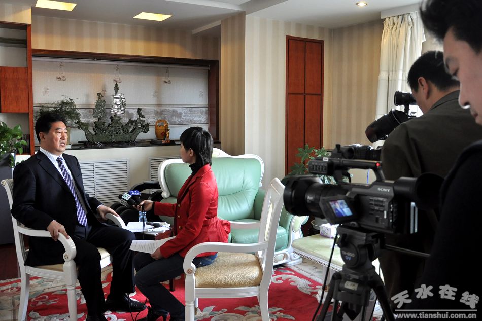 3月17日上午,剛剛參加完全國(guó)“兩會(huì)”的全國(guó)人大代表、天水市委書(shū)記、市人大常委會(huì)主任張景輝在蘭州接受了甘肅日?qǐng)?bào)、甘肅人民廣播電臺(tái)、甘肅電視臺(tái)、甘肅經(jīng)濟(jì)日?qǐng)?bào)以及天水新聞媒體的聯(lián)合采訪,張景輝就如何貫徹落實(shí)《關(guān)中——天水經(jīng)濟(jì)區(qū)發(fā)展規(guī)劃》暢所欲言,描繪天水發(fā)展藍(lán)圖。