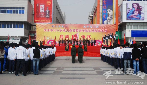 此次活動以“邁入青春門、走好成人路”為主題,通過開展宣誓、簽名活動,引導學生建立和強化公民意識、法制意識、社會意識和國家意識,形成正確的世界觀、人生觀、價值觀、事業(yè)觀,更好地擔負起現(xiàn)代化建設(shè)的重任;通過就業(yè)創(chuàng)業(yè)咨詢、現(xiàn)場招聘等系列活動,切實培訓引導一批有志青年通過創(chuàng)業(yè)實現(xiàn)自我就業(yè),帶動更多的其它勞動者就業(yè),為促進社會充分就業(yè)、構(gòu)建和諧天水做出新的貢獻。