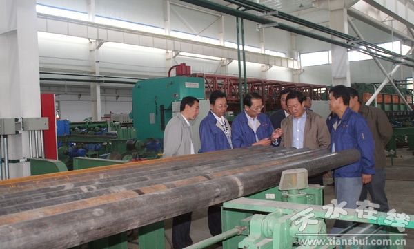 楊維俊一行先后深入三家企業(yè)的項(xiàng)目建設(shè)現(xiàn)場(chǎng)和生產(chǎn)車間,認(rèn)真察看了解了天水西電高壓電工觸頭生產(chǎn)基地、風(fēng)動(dòng)公司高性能石油鉆桿開發(fā)及生產(chǎn)線技術(shù)改造項(xiàng)目和新一代液壓鑿巖采掘支護(hù)設(shè)備開發(fā)及生產(chǎn)線技術(shù)改造項(xiàng)目、鍛壓公司25萬噸大直縫埋弧焊管全自動(dòng)生產(chǎn)線等重點(diǎn)項(xiàng)目的實(shí)施情況。