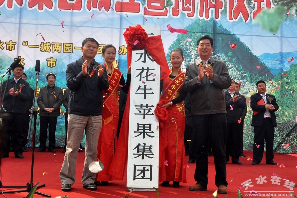 天水市委書記、市人大常委會(huì)主任張景輝,省供銷社副主任張彬共同為花牛蘋果集團(tuán)揭牌。市委副書記張應(yīng)華在揭牌儀式上講話,市委常委、常務(wù)副市長柴金祥代表市政府授予花牛蘋果集團(tuán)花牛蘋果商標(biāo)使用證書。