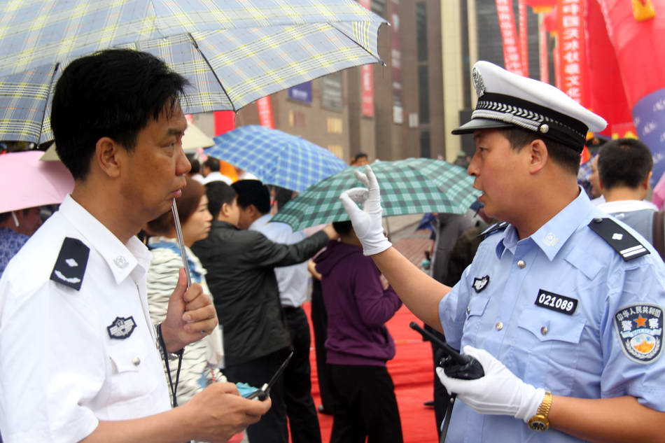 (副支隊(duì)長關(guān)進(jìn)中引導(dǎo)參會(huì)車輛有序停放)