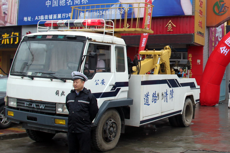 (交警支隊(duì)派出道路清障車現(xiàn)場待命)