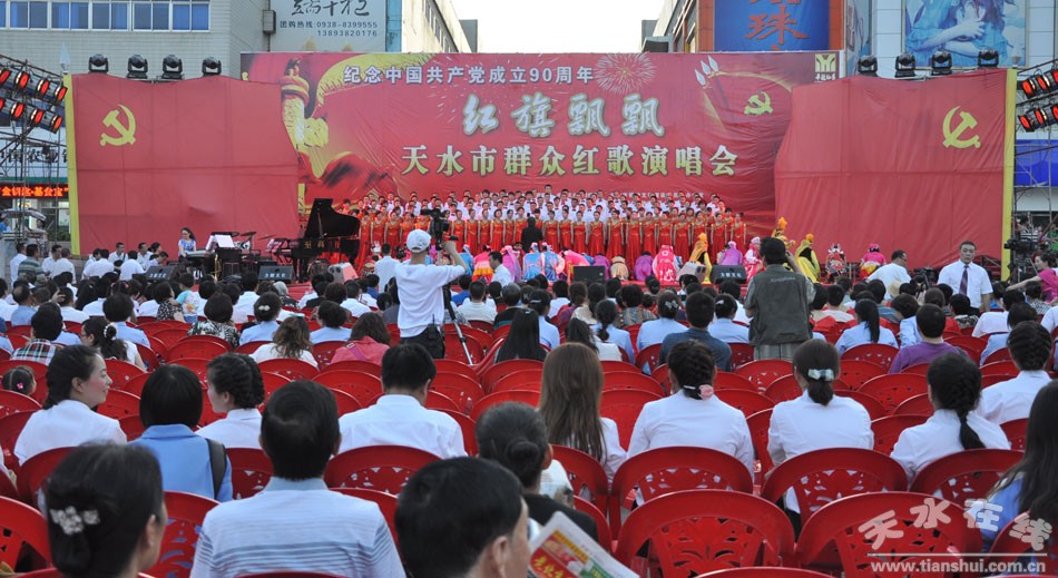 6月27日晚,由中共天水市委宣傳部,組織部、天水市文明辦、天水市文化文物出版局等單位主辦的紀(jì)念中國共產(chǎn)黨成立90周年天水市“紅旗飄飄”群眾紅歌演唱會(第二場)在龍城廣場繼續(xù)舉行。市委常委、宣傳部長王光慶,市委常委、副市長郭奇若等觀看演出。