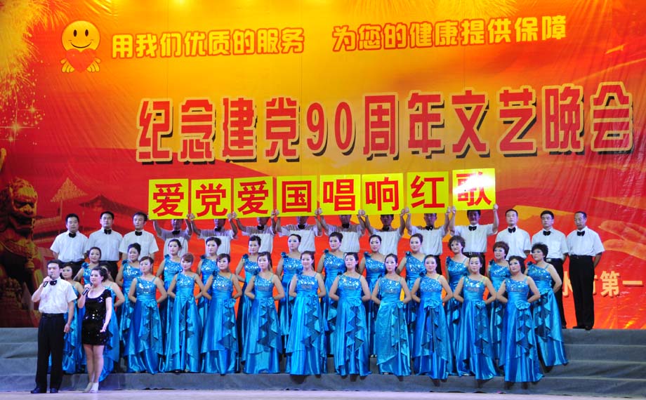 文藝演出在醫(yī)院合唱隊(duì)演唱的、獲得全市慶祝建黨90周年文藝調(diào)演一等獎(jiǎng)的大合唱《祖國(guó)不會(huì)忘記》和《走向復(fù)興》中拉開帷幕。離退休黨支部的女聲小合唱《黨啊,親愛的媽媽》,一曲來(lái)自心聲、自肺腑涌出的激情歌曲,表達(dá)了他們對(duì)黨的無(wú)限熱愛。從心血管內(nèi)科等科室的舞蹈《吉祥頌》 ,到門診部等科室的表演唱《我的祖國(guó)》,從腫瘤外科等科室的舞蹈《映山紅》,到普外科等科室的歌伴舞《祖國(guó)萬(wàn)歲》,從脊柱外科等科室的舞蹈《紅旗飄飄》,到藥劑科的歌伴舞《五星紅旗》,住院部放射科等科室的舞蹈《十送紅軍》,設(shè)備科等科室的舞蹈《哈達(dá)獻(xiàn)給黨》,以及財(cái)務(wù)科等科室的舞蹈《陽(yáng)光大道》,每個(gè)節(jié)目都有鮮明的主題和較強(qiáng)的藝術(shù)性,他們以不同形式的節(jié)目歌頌者黨的英明和偉大,爭(zhēng)唱著奮進(jìn)的一院人所發(fā)生的可喜變化,他們以強(qiáng)大的凝聚力、向心力,表達(dá)了對(duì)黨和祖國(guó)的熱愛,對(duì)未來(lái)的信心。整場(chǎng)晚會(huì)演出充滿歡樂祥和、激動(dòng)和熱情,感染了每一位一院人,表達(dá)了我們的黨歷經(jīng)九十年奮斗不息、九十年?duì)N爛輝煌、九十年的非凡成就,一顆顆華夏兒女的赤子之心為之振奮。超聲科、汽車對(duì)的現(xiàn)代舞《陽(yáng)光下的我們》和婦產(chǎn)科的歌伴舞《和諧中國(guó)》將晚會(huì)推向高潮,最后在麻醉科、病理科的合唱《中國(guó)中國(guó)鮮紅的太陽(yáng)永不落》中落下帷幕。