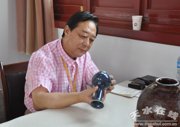 古陶瓷鑒定專家丘小君正在鑒寶