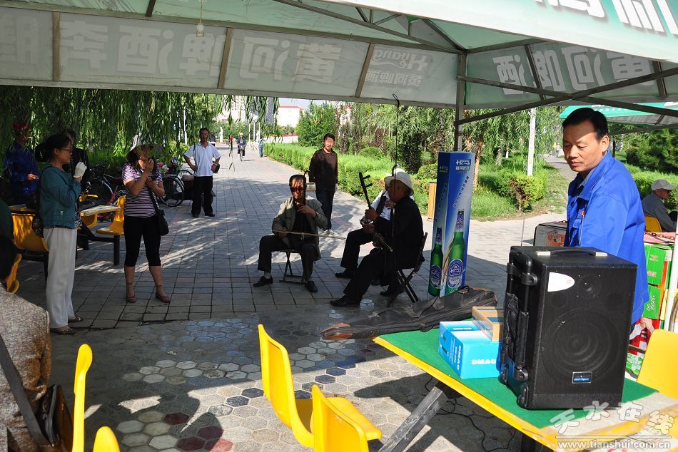 (嘉峪關(guān)大街上的秦腔自樂班在演唱)