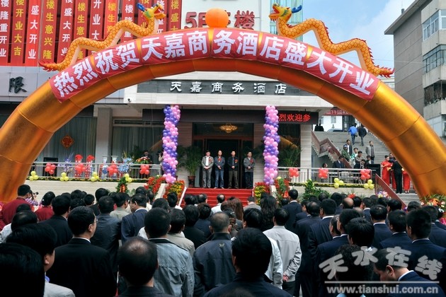 9月27日,位于天水市秦州區(qū)新華路長(zhǎng)途汽車(chē)站南門(mén)的天嘉商務(wù)酒店•茶園開(kāi)業(yè)迎賓。市政協(xié)副主席竇正安,市人大常委會(huì)秘書(shū)長(zhǎng)張仲康出席開(kāi)業(yè)典禮并剪彩。