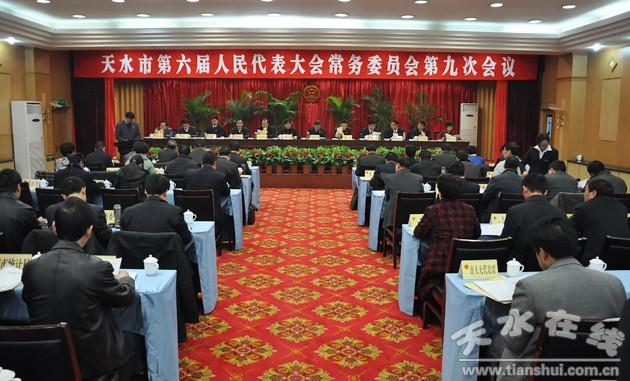 12月14日,天水市六屆人大常委會第九次會議在天水迎賓館召開,市人大常委會主任柴金祥、副主任安永分別主持第一、二次全體會議。