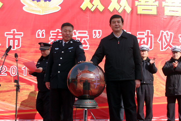 啟動(dòng)儀式由市公安局副局長(zhǎng)、交警支隊(duì)支隊(duì)長(zhǎng)霍秦生主持。交警支隊(duì)政委楊金生宣讀了《天水市2013年春運(yùn)交通安全管理工作方案》。天嘉運(yùn)輸集團(tuán)公司總經(jīng)理黃明生、秦州城區(qū)交警大隊(duì)大隊(duì)長(zhǎng)許維正、秦州運(yùn)管分局副局長(zhǎng)王勇先后作了表態(tài)發(fā)言。趙衛(wèi)東在啟動(dòng)儀式上從確保全市社會(huì)持續(xù)穩(wěn)定的大局出發(fā)做好今年春運(yùn)工作作了重要講話(huà)。他強(qiáng)調(diào),一要加強(qiáng)組織協(xié)調(diào),全力做到組織到位、措施到位、服務(wù)到位、保障到位;二要強(qiáng)化監(jiān)督管理,消除道路交通安全隱患;三要做好應(yīng)急保障,制定并完善春運(yùn)安全應(yīng)急預(yù)案。他要求,全體參戰(zhàn)人員要克服一切困難和厭戰(zhàn)情緒,以高度負(fù)責(zé)的態(tài)度,認(rèn)真履行部門(mén)職責(zé),全面靠實(shí)工作責(zé)任,全力以赴投入到春運(yùn)交通安全管理工作之中,為全市人民群眾歡度新春佳節(jié)營(yíng)造一個(gè)安全、有序、暢通的和諧道路交通環(huán)境。