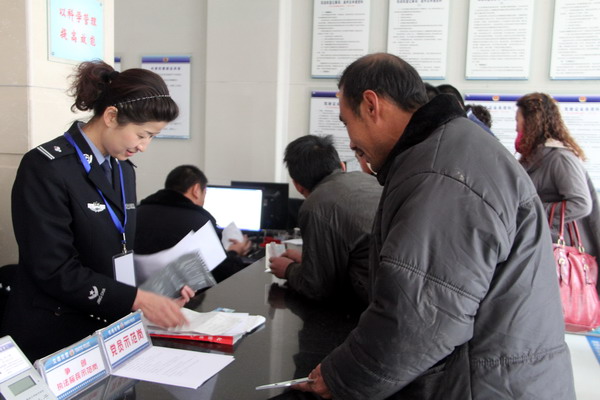 各(縣)區(qū)車管所開辦免檢小型汽車和微型載客載貨汽車、各鄉(xiāng)(鎮(zhèn))中隊開辦“五種車輛”相關(guān)業(yè)務(wù),建立交通服務(wù)站,設(shè)立三輪汽車、摩托車牌證代辦點及機動車注冊登記代辦4S店的基礎(chǔ)上,各車管大廳配備了專職導(dǎo)辦員推行導(dǎo)辦服務(wù),安裝了自助服務(wù)終端免費投入使用;同時,各車管所深入轄區(qū)運輸企業(yè)和有車單位,實行上門服務(wù);依托機動車安檢機構(gòu)聯(lián)網(wǎng),實現(xiàn)了遠程核發(fā)車輛檢驗合格標志。