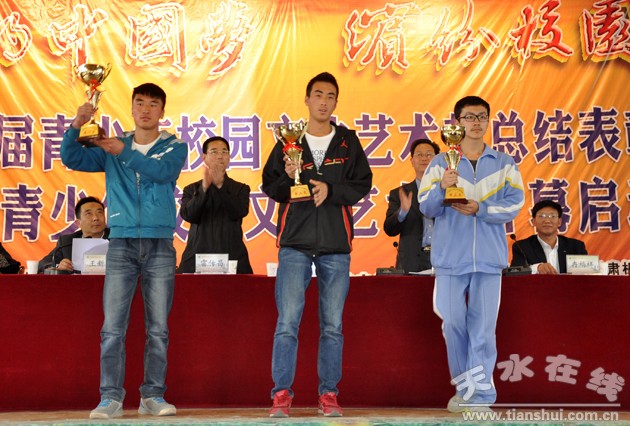 (為天水市青少年校園歌手大賽等獎項一等項獲得者頒獎)
