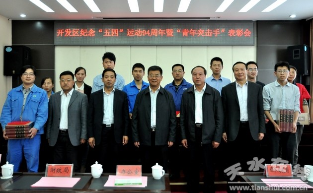5月2日,天水經(jīng)濟(jì)技術(shù)開發(fā)區(qū)舉行紀(jì)念“五四”運(yùn)動(dòng)94周年暨“五四青年突擊手”表彰大會(huì),開發(fā)區(qū)黨工委書記、管委會(huì)主任趙建強(qiáng),管委會(huì)副主任楊坤、張義明、陸金良,紀(jì)工委書記蔡全增出席活動(dòng),管委會(huì)各部門、單位負(fù)責(zé)同志及管委會(huì)機(jī)關(guān)和各企業(yè)的團(tuán)員青年代表參加大會(huì)。