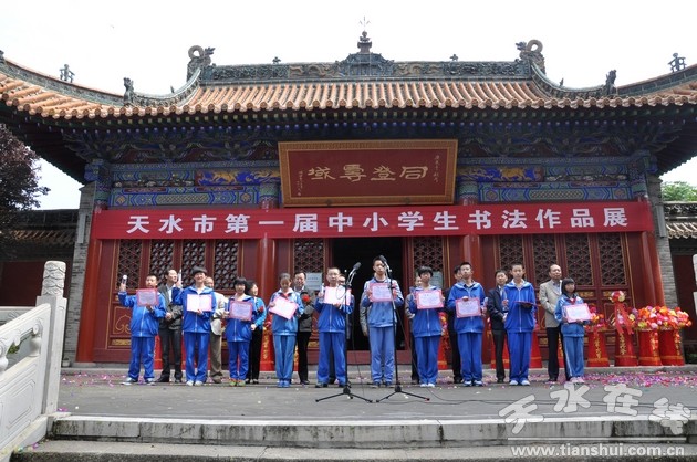 為慶!傲弧眹H兒童節(jié)的到來,天水市首屆中小學生書法作品展5月29日在天水書畫院開展。 開展儀式上,還為30幅獲獎作品的小作者及優(yōu)秀組織單位頒獎。