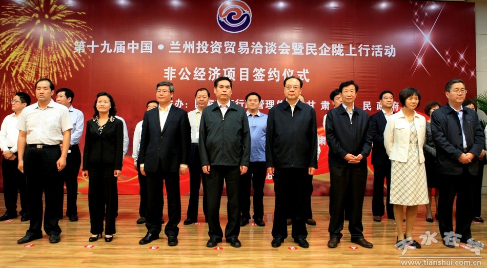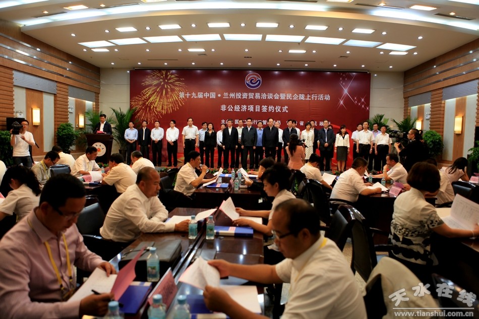 天水在線蘭州報道 6月20日,由國家工商總局和省政府共同主辦,中國個體勞動者協(xié)會支持,省工商局、省私營企業(yè)協(xié)會具體承辦的第19屆蘭洽會暨民企隴上行活動非公經(jīng)濟項目簽約儀式在蘭州舉行。