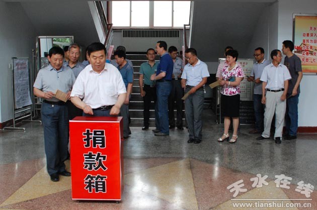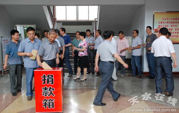 7月19日下午,天水市人大常委會(huì)機(jī)關(guān)干部職工積極響應(yīng)市總工會(huì)、團(tuán)市委、市婦聯(lián)發(fā)出的向我市特大暴雨災(zāi)區(qū)捐款捐物的倡議,紛紛伸出援助之手,以實(shí)際行動(dòng)支援災(zāi)區(qū)。當(dāng)天,共捐款2.17萬元。