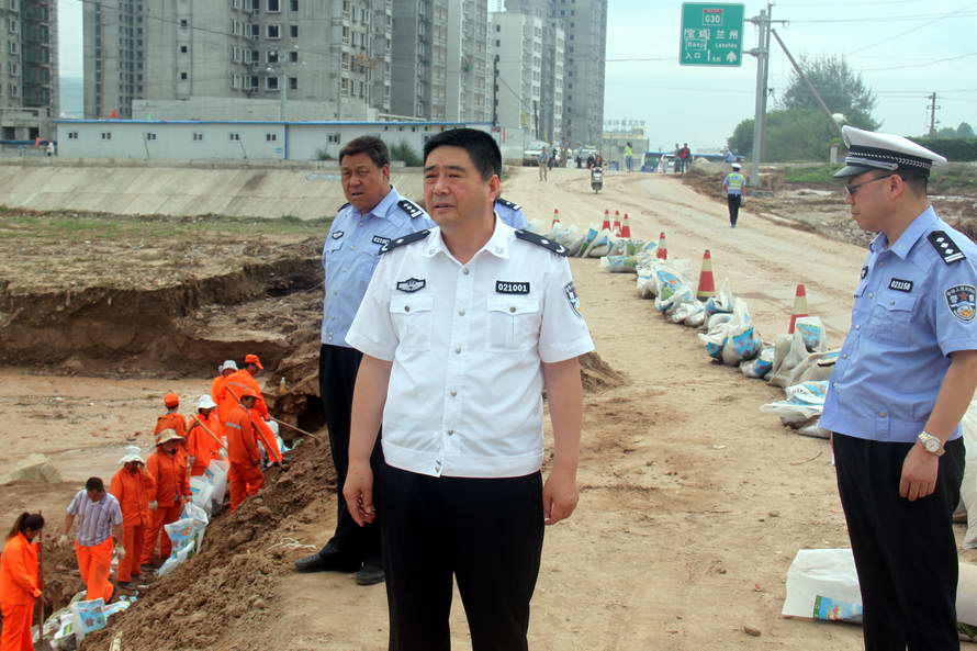 (市公安局副局長、交警支隊支隊長霍秦生,副政委高維忠?guī)ьI(lǐng)民警赴316國道沿線指導(dǎo)抗災(zāi)救災(zāi)交通保障工作)