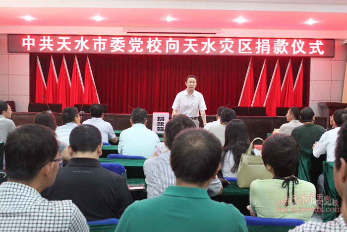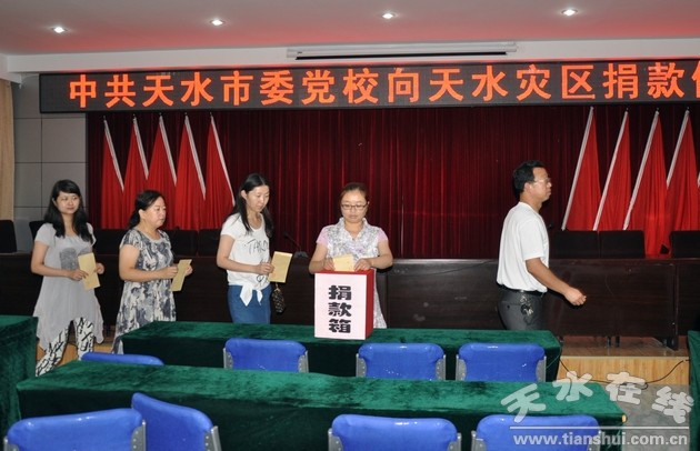 為積極響應(yīng)市總工會(huì)、團(tuán)市委、市婦聯(lián)發(fā)出的捐款捐物倡議,8月9日,天水市委黨校舉行為天水市特大暴雨災(zāi)區(qū)捐款儀式,全體干部職工及駐校單位紛紛伸出援助之手,奉獻(xiàn)愛心,幫助災(zāi)區(qū)人民群眾渡過難關(guān),現(xiàn)場共收到捐款33000元。