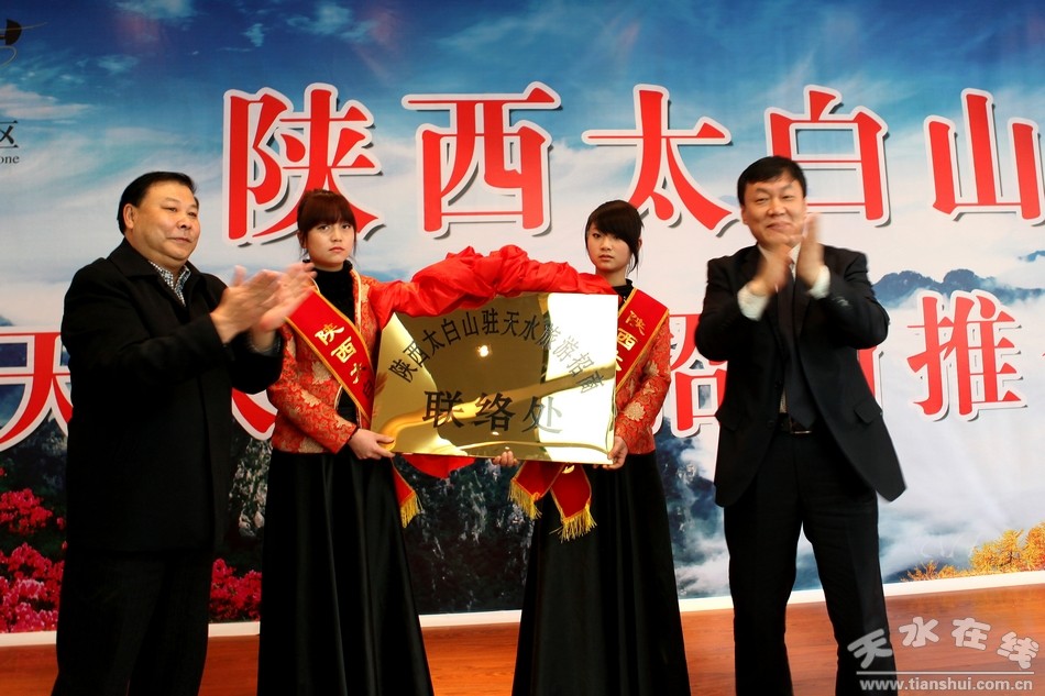(秦州區(qū)委常委、宣傳部長(zhǎng)劉小平和眉縣縣委常委、宣傳部長(zhǎng)劉懷亮為陜西太白山駐天水聯(lián)絡(luò)處揭牌)