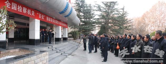 由最高人民檢察院組織的全國檢察機(jī)關(guān)“百優(yōu)”預(yù)防職務(wù)犯罪警示教育基地評選活動日前揭曉,天水市廉政教育基地獲“全國檢察機(jī)關(guān)百優(yōu)警示教育基地”殊榮。1月7日下午,授牌儀式在省稅務(wù)干部學(xué)校舉行。