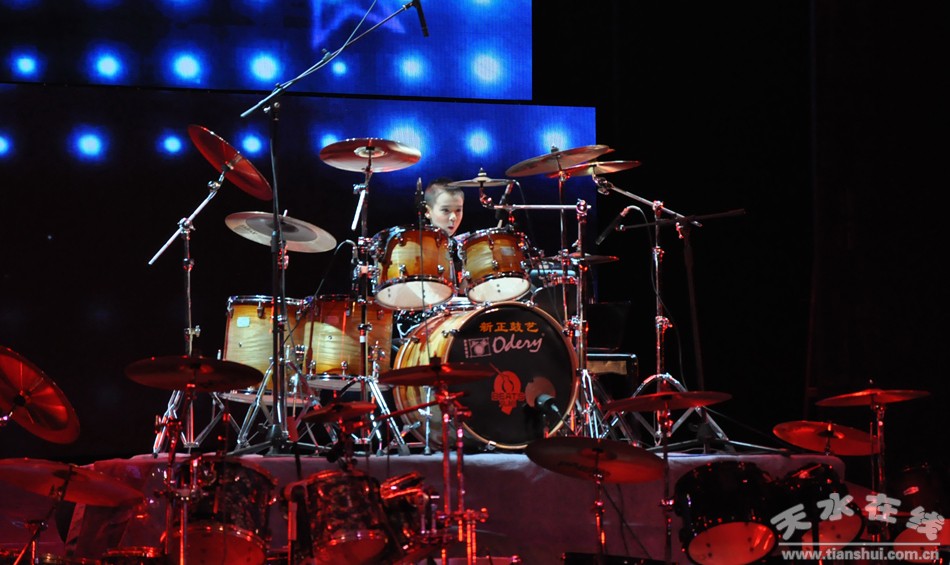 ▲爵士鼓表演:《路燈下的小姑娘》 表演者:(敦煌鼓風(fēng)音樂(lè)俱樂(lè)部)李娜等
