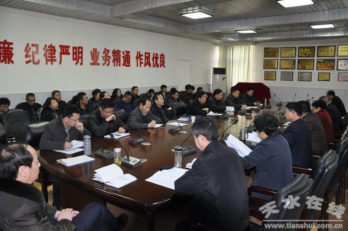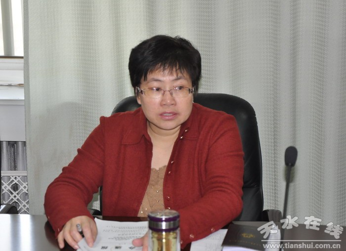 (天水市紀委召開全體干部職工會議,李美華主持會議并講話。)