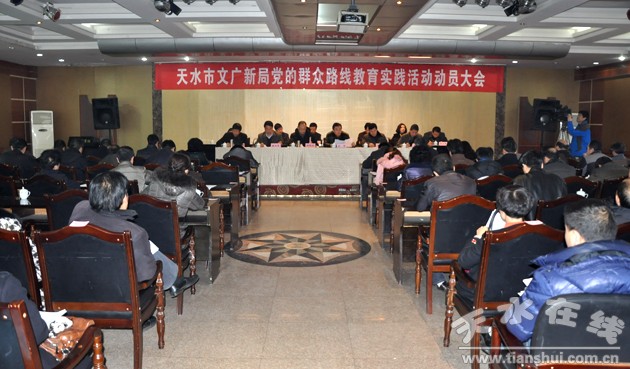 2月20日上午,天水市文廣新局召開(kāi)黨的群眾路線教育實(shí)踐活動(dòng)動(dòng)員會(huì),全面貫徹中央、省委和市委的決策部署,對(duì)全系統(tǒng)開(kāi)展教育實(shí)踐活動(dòng)進(jìn)行動(dòng)員部署。