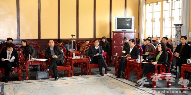 3月11日下午,我市召開(kāi)座談會(huì),邀請(qǐng)來(lái)天水考察的廣州華夏尚古文化研究院院長(zhǎng)尚志喜一行,就文化天水與區(qū)域性現(xiàn)代化大城市建設(shè)進(jìn)行交流。副市長(zhǎng)張建杰主持座談會(huì)。