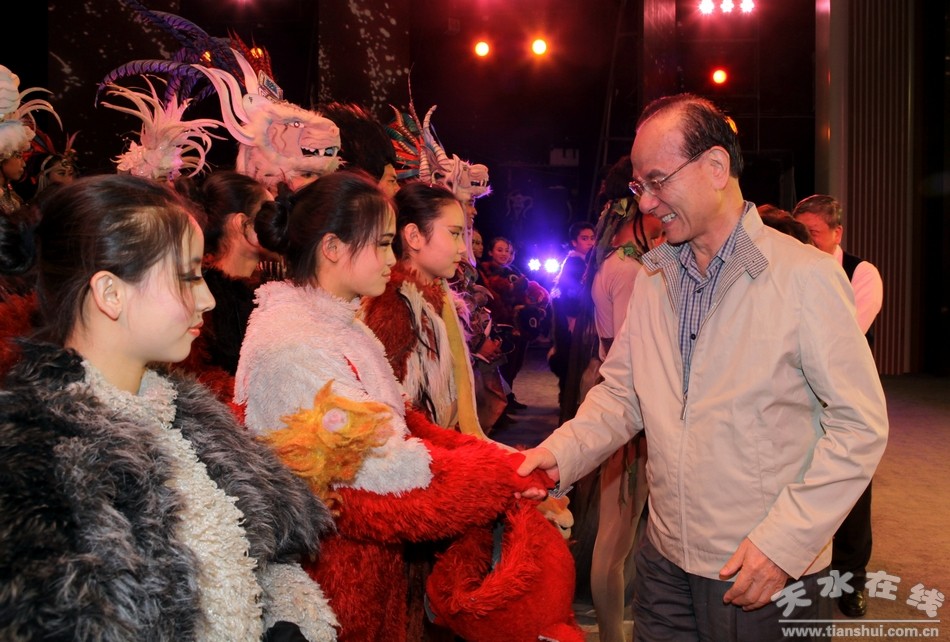 6月22日晚,作為2014(甲午)年公祭中華人文始祖伏羲大典暨第25屆中國(guó)•天水伏羲文化旅游節(jié)的重要文化活動(dòng)之一的大型中國(guó)舞劇《一畫開(kāi)天》在秦州劇院舉行第二場(chǎng)演出,中國(guó)國(guó)民黨榮譽(yù)副主席林豐正先生及夫人黃雪女士和部分參會(huì)嘉賓一起觀看了演出。