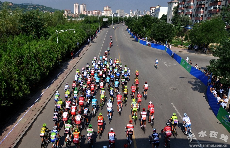 (7月15日上午,第十三屆環(huán)青海湖國際公路自行車賽第九賽段(天水繞圈賽)在天水主城區(qū)隆重舉行。) |