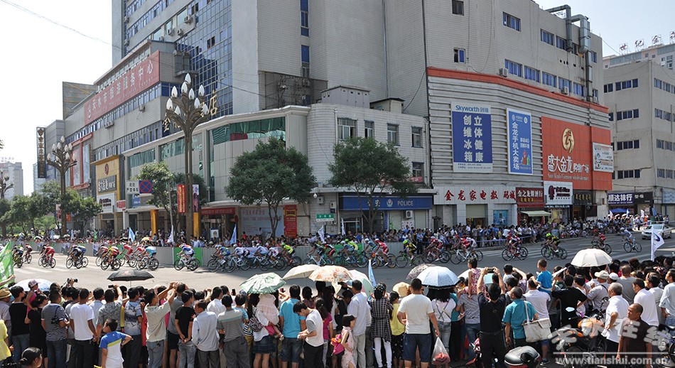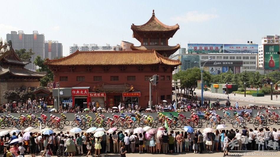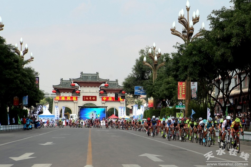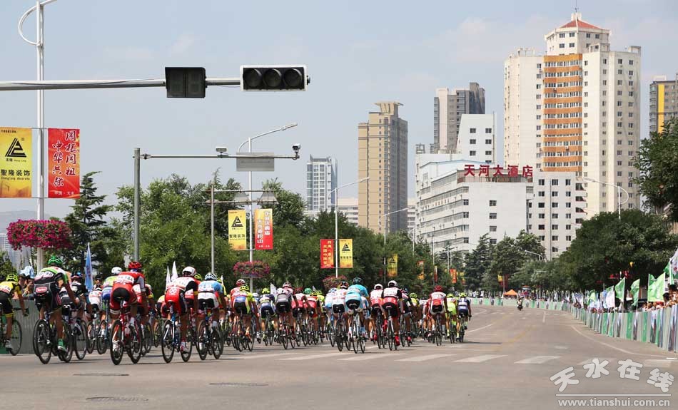 (7月15日上午,第十三屆環(huán)青海湖國際公路自行車賽第九賽段(天水繞圈賽)在天水主城區(qū)隆重舉行。)