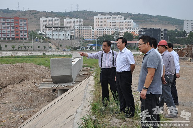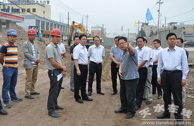 8月22日下午,天水市委副書(shū)記、市長(zhǎng)楊維俊帶領(lǐng)市建設(shè)局、市城投公司和秦州區(qū)政府相關(guān)負(fù)責(zé)人,就城區(qū)重點(diǎn)建設(shè)項(xiàng)目進(jìn)展情況進(jìn)行了檢查。楊維俊強(qiáng)調(diào),各相關(guān)單位要緊緊抓住當(dāng)前有利的施工期,集中力量,倒排工期,嚴(yán)把質(zhì)量,加快進(jìn)度,確保項(xiàng)目建設(shè)安全快速推進(jìn)。