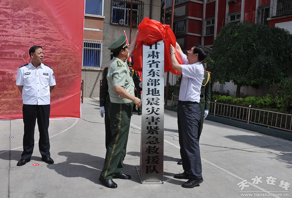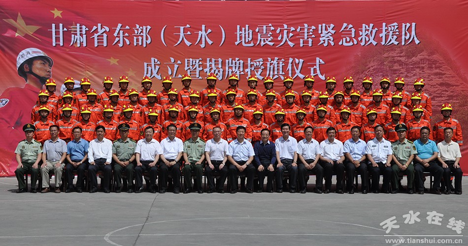 劉斌宣讀了《甘肅省人民政府辦公廳〈關(guān)于組建甘肅省東部和西部區(qū)域性省級地震災(zāi)害緊急救援隊的通知〉》,王璽玉為甘肅省東部地震災(zāi)害緊急救援隊授旗,王蘭民、張存義為甘肅省東部地震災(zāi)害緊急救援隊揭牌,王銳、楊維俊分別為天水市地震災(zāi)害緊急救援隊授旗和揭牌。