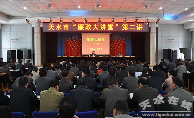 10月29日,天水市廉政大講堂第二講在市委黨校開講,市委副書記、市政協(xié)主席宋尚有作了加強(qiáng)農(nóng)村基層黨風(fēng)廉政建設(shè)的輔導(dǎo)講座。