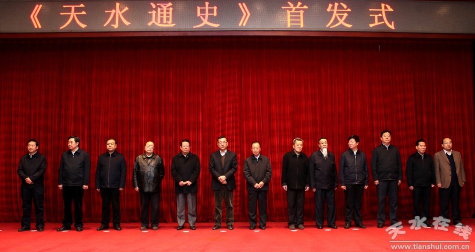 12月3日,《天水通史》正式出版,首發(fā)儀式在省城蘭州舉行。省委常委、省委宣傳部部長連輯,省人大常委會副主任馬青林,副省長王璽玉,省政協(xié)副主席張津梁、張景輝,原省委副書記李虎林、原省人大常委會副主任李膺、原省政協(xié)副主席鄧成城、周宜興、馬國瑜,天水市人大常委會主任柴金祥,市委副書記、市長楊維俊,市委常委、宣傳部長彭鴻嘉,副市長張建杰以及在天水工作過的老領導,天水籍在蘭工作的有關領導,省直宣傳思想文化單位領導,蘭州大學、西北師范大學審稿專家,省內高校歷史學知名專家,省圖書館、檔案館及省內高校圖書館負責人,甘肅省新華書店負責人,駐省及省內新聞單位記者等140多人出席首發(fā)儀式。