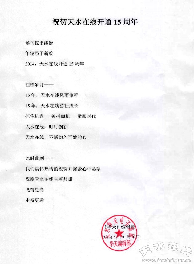 ·華天編輯部祝賀天水在線開(kāi)通十五周年(圖)