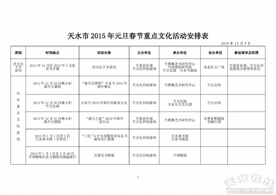 天水市2015年元旦春節(jié)重點文化活動安排表