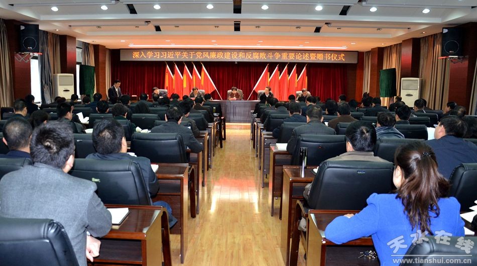 為推動(dòng)廣大黨員、干部全面系統(tǒng)地學(xué)習(xí)、理解和把握習(xí)近平總書記關(guān)于黨風(fēng)廉政建設(shè)和反腐敗斗爭(zhēng)重要論述,3月10日,天水市紀(jì)委召開全市紀(jì)檢監(jiān)察系統(tǒng)會(huì)議,對(duì)深入學(xué)習(xí)貫徹《習(xí)近平關(guān)于黨風(fēng)廉政建設(shè)和反腐敗斗爭(zhēng)論述摘編》進(jìn)行了宣傳動(dòng)員。